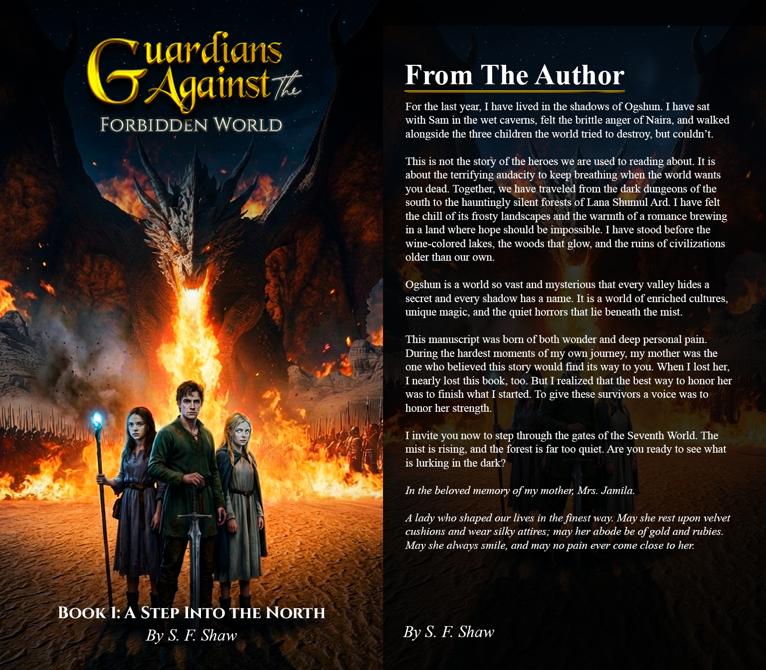 A Step into the Dark North is the first book in the Guardians Against the Forbidden World series. It follows three children who escape from hostilities and venture into the mysterious northern lands filled with mythical creatures, ancient secrets, and powerful emotional challenges.